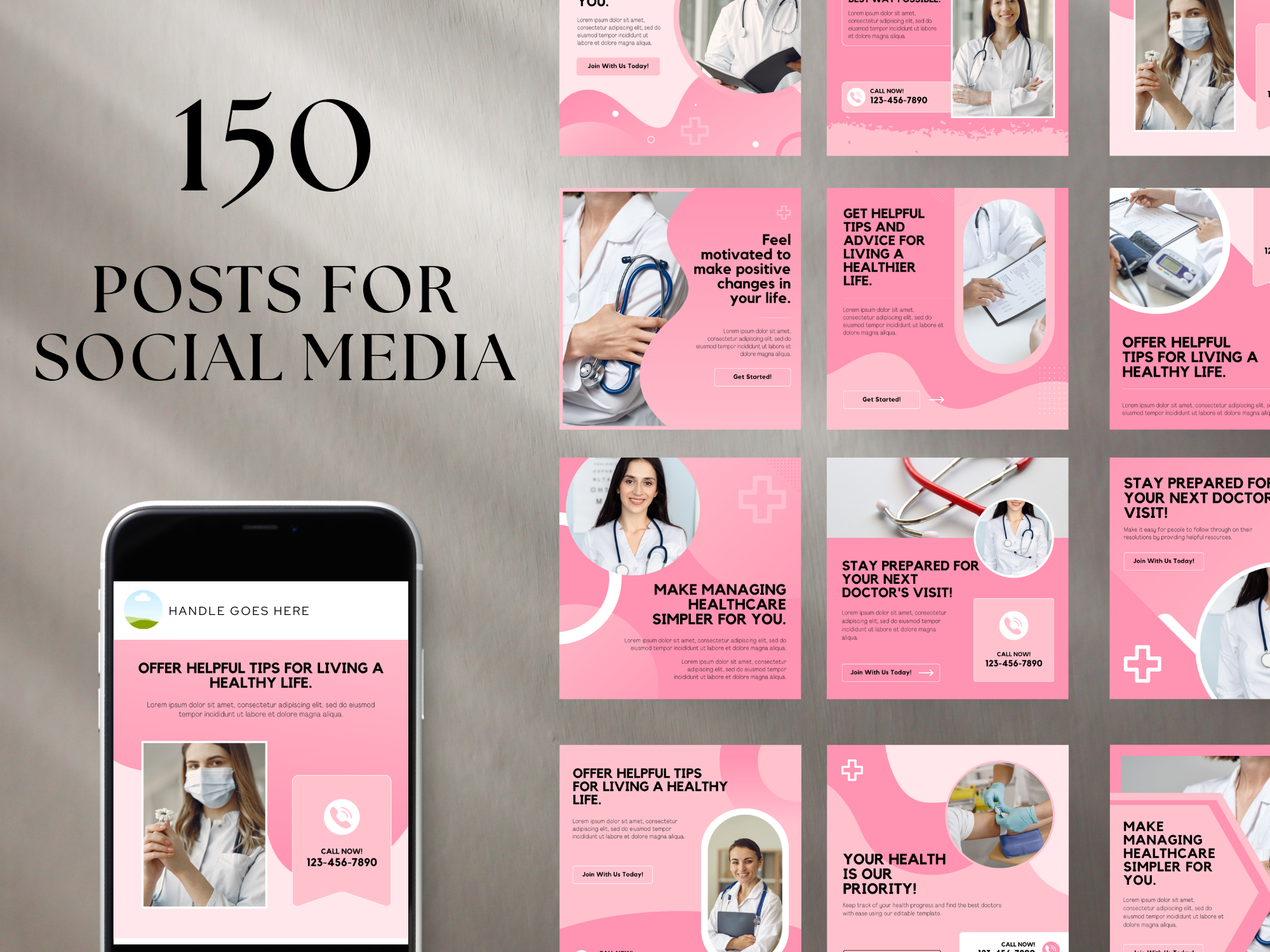 Editable Healthcare Social Media Canva Templates Bundle – 150 Designs with PLR