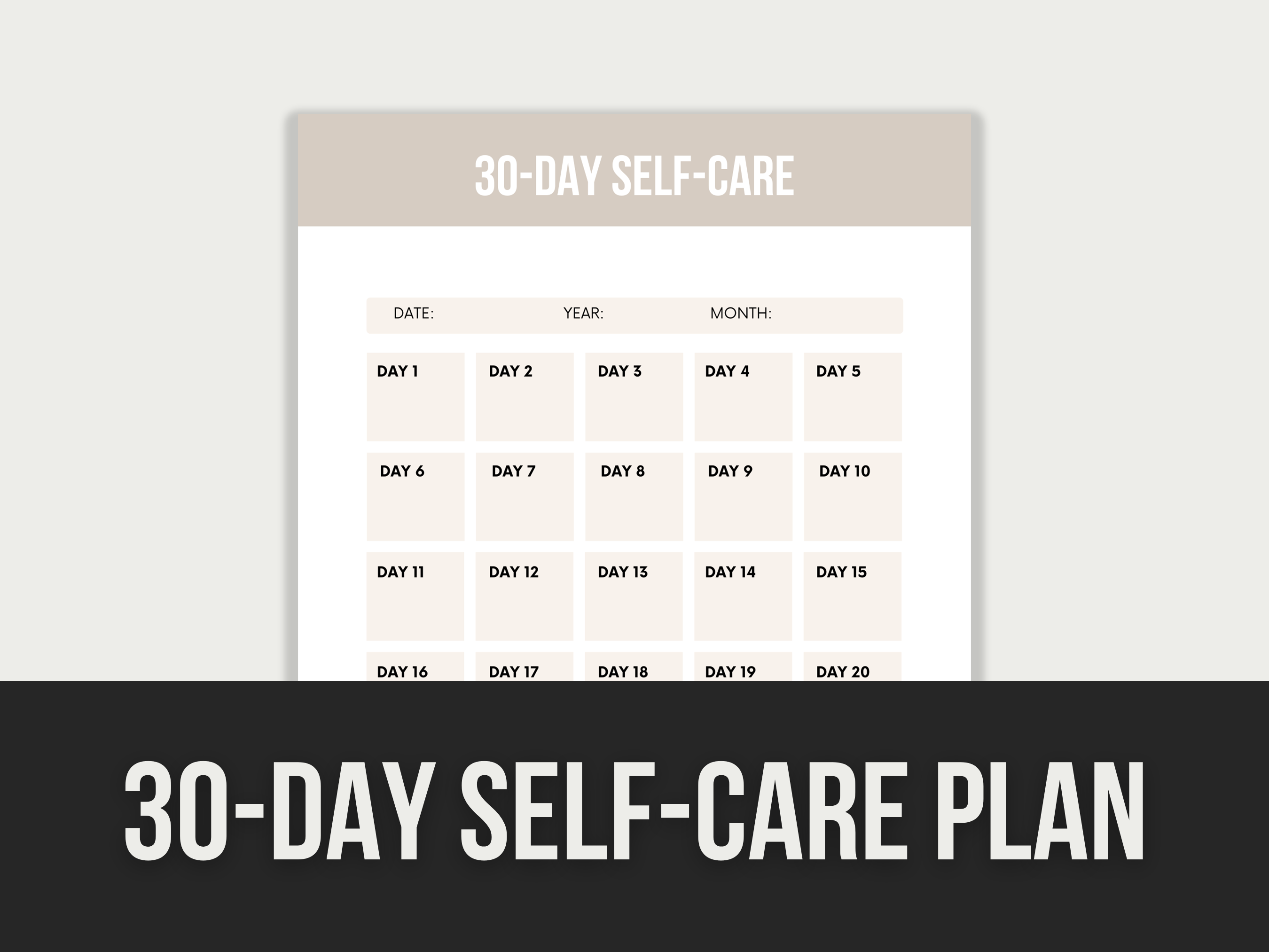 Editable Templates: A 30-day self-care plan designed for building habits and prioritizing wellness