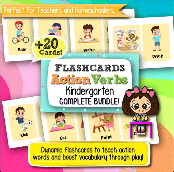 Action Verbs Flashcards for Kindergarten – 20+ Cards