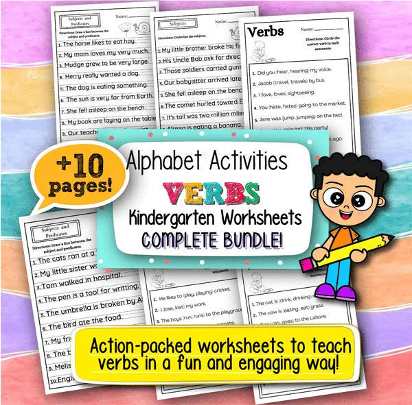 Alphabet Activities Verbs Kindergarten Worksheets – Printable PDF, 10+ Pages