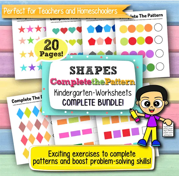 Complete the Pattern Shapes Worksheets for Kindergarten – 20 Pages