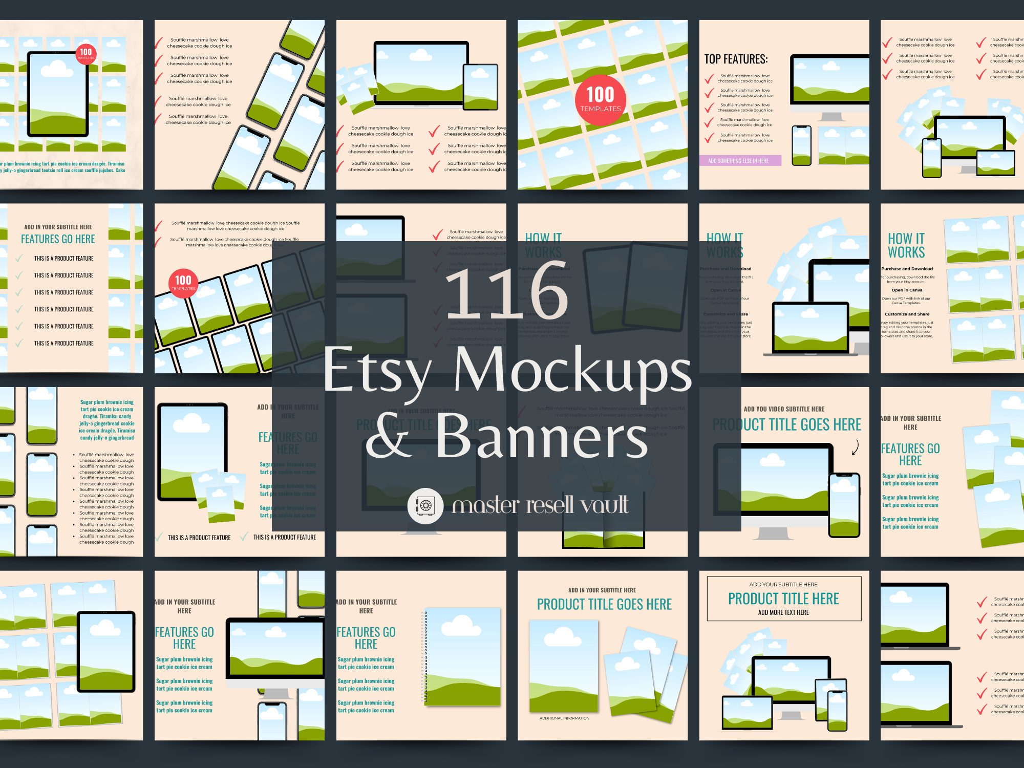 116 Etsy Listing Mockups & Banners Canva Templates with PLR – Editable Designs