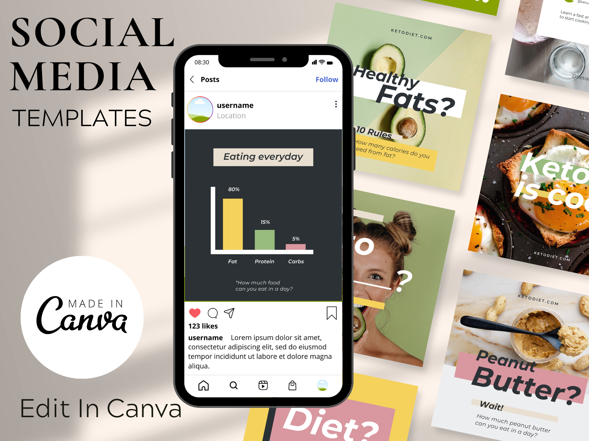 Editable Templates: Fitness and food-themed Instagram templates designed for influencers and brands