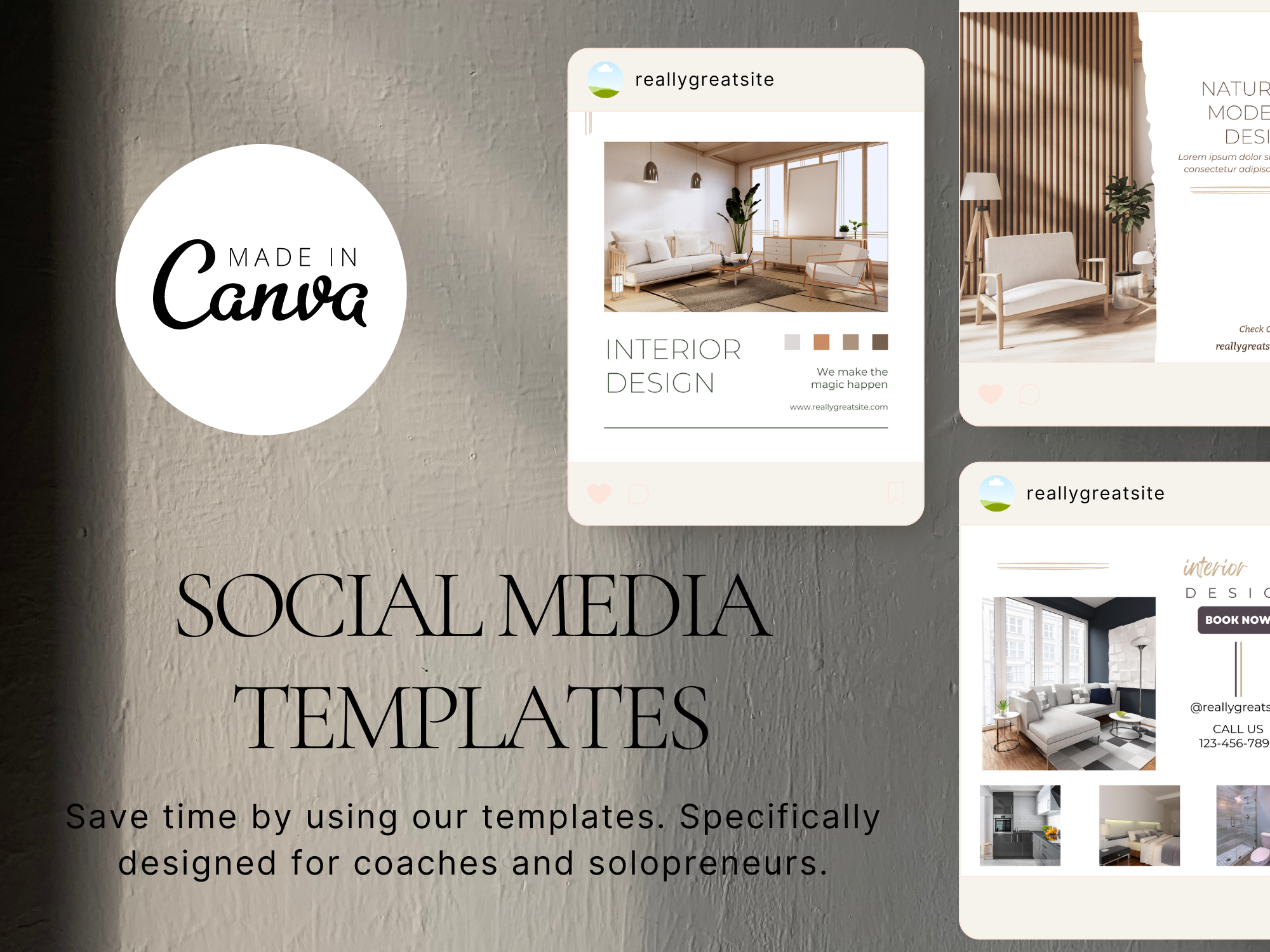 Editable Canva Templates with PLR: Includes 20 Instagram post templates optimized for interior design and branding.