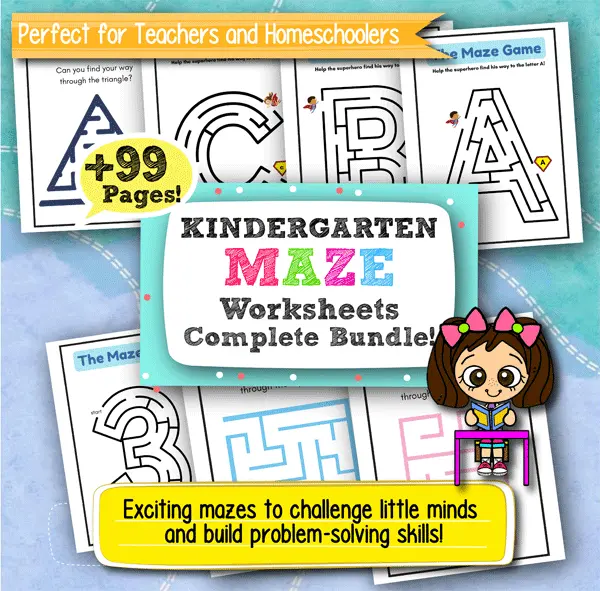 Make learning fun with this massive collection of maze worksheets designed specifically for kindergarteners! With 99+ printable pages, kids will navigate through alphabet mazes, shape mazes, and fun problem-solving puzzles, improving their fine motor skills, critical thinking, and concentration.