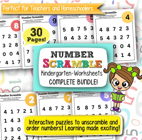 Number Scramble Worksheets for Kindergarten – 30 Pages