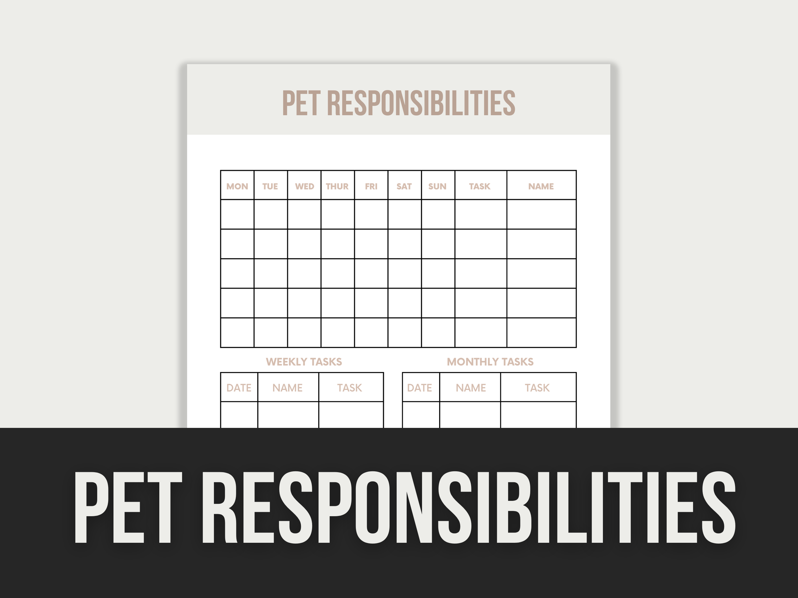 Editable Templates: Designed to organize and track pet care responsibilities and tasks