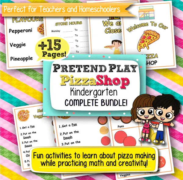 Pretend Play Kindergarten Worksheets – Pizza Shop, 15+ Pages