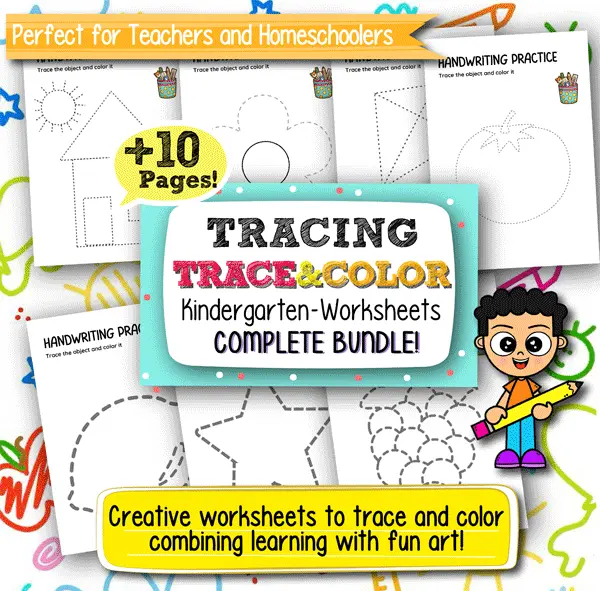 Trace and Color Worksheets for Kindergarten – 10+ Pages